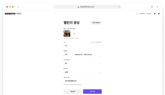 챌린지 기간이나 인증 횟수 등을 선택할 수 있어요.