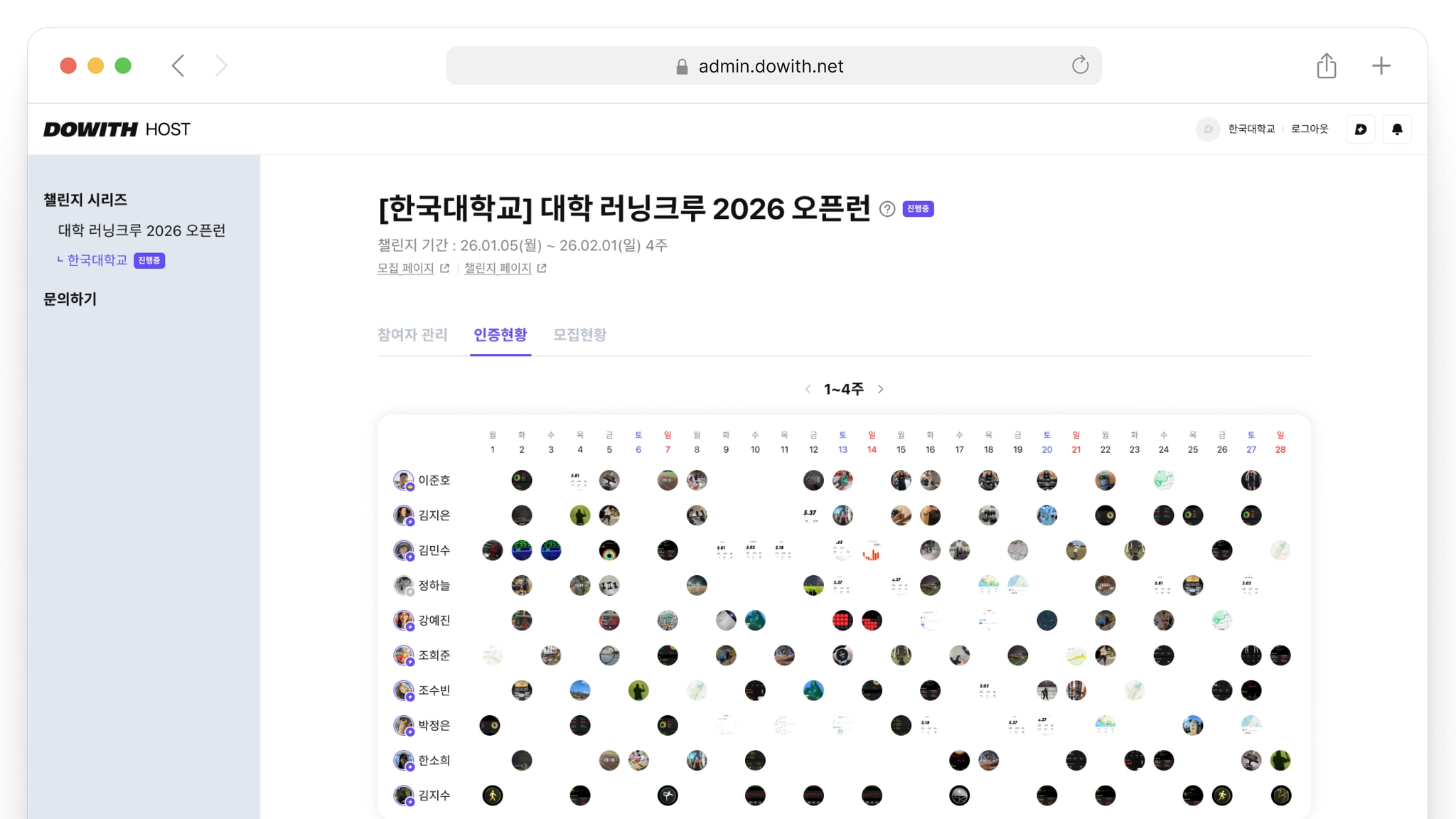 새해 4주간 운영되는 대학 러닝크루 대상의 온라인 연합 챌린지입니다.